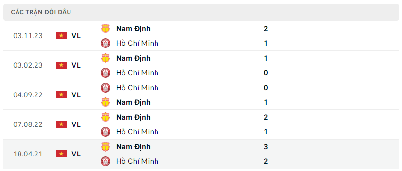 Lịch sử đối đầu, phong độ TP.HCM vs Thép Xanh Nam Định