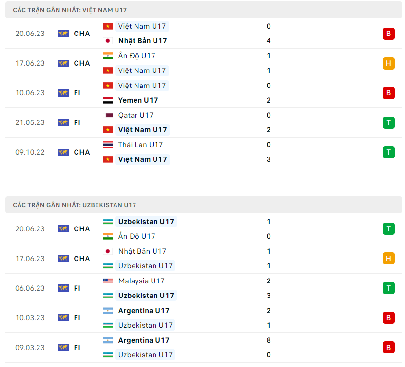 Phong độ, lịch sử đối đầu U17 Việt Nam vs U17 Uzbekistan