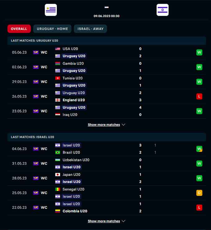 Phong độ, lịch sử đối đầu U20 Uruguay vs U20 Israel