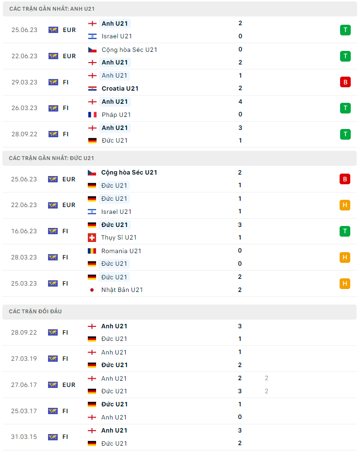 Phong độ, lịch sử đối đầu U21 Anh vs U21 Đức