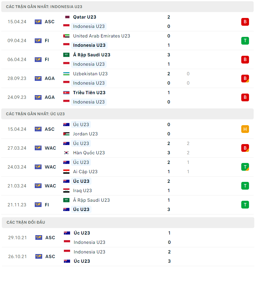 Lịch sử đối đầu, phong độ U23 Indonesia vs U23 Australia