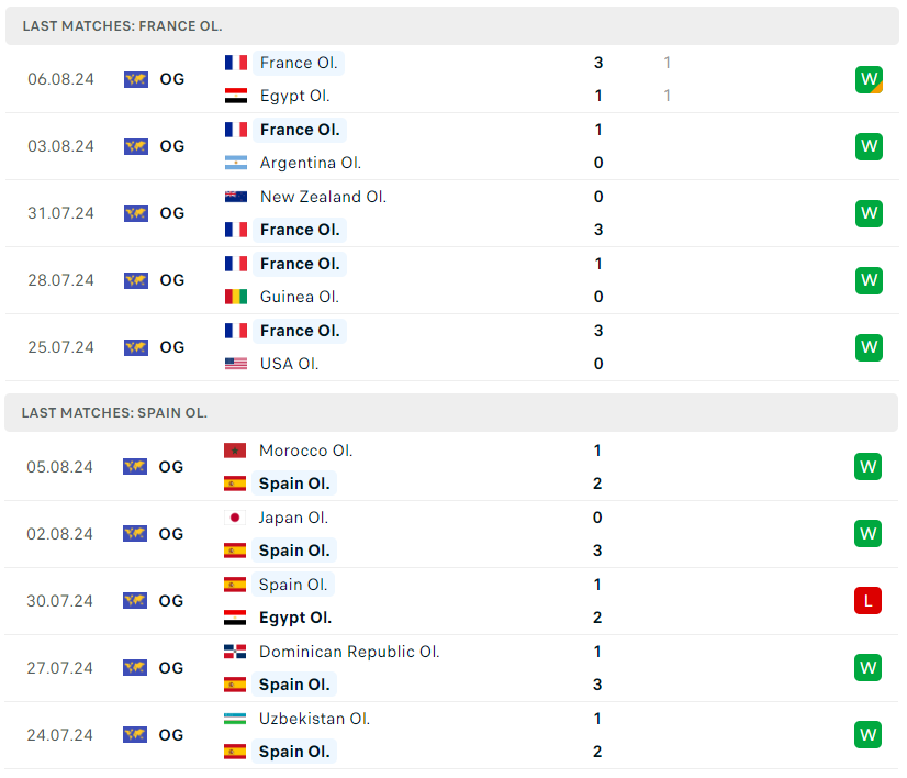 Lịch sử đối đầu, phong độ U23 Pháp vs U23 Tây Ban Nha