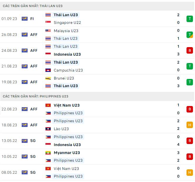 Phong độ, lịch sử đối đầu U23 Thái Lan vs U23 Philippines