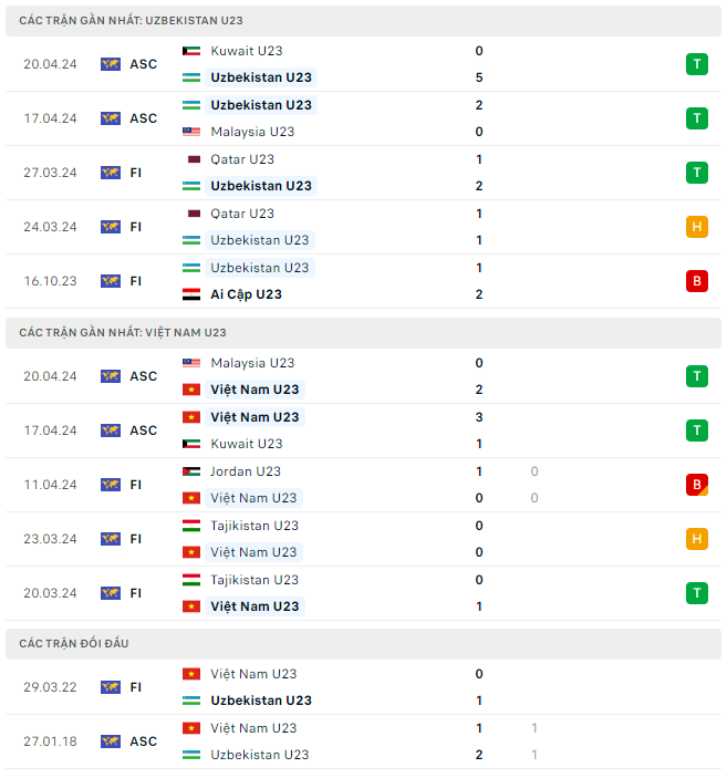 Phong độ, lịch sử đối đầu U23 Uzbekistan vs U23 Việt Nam
