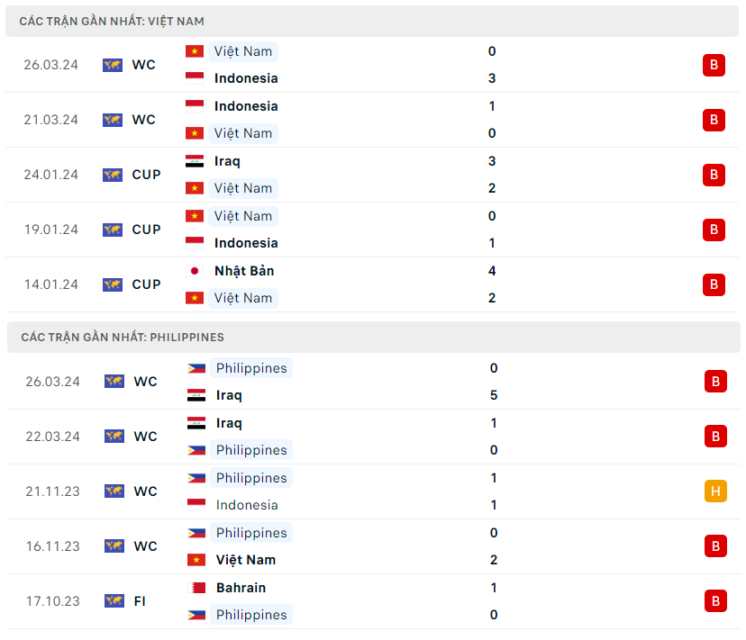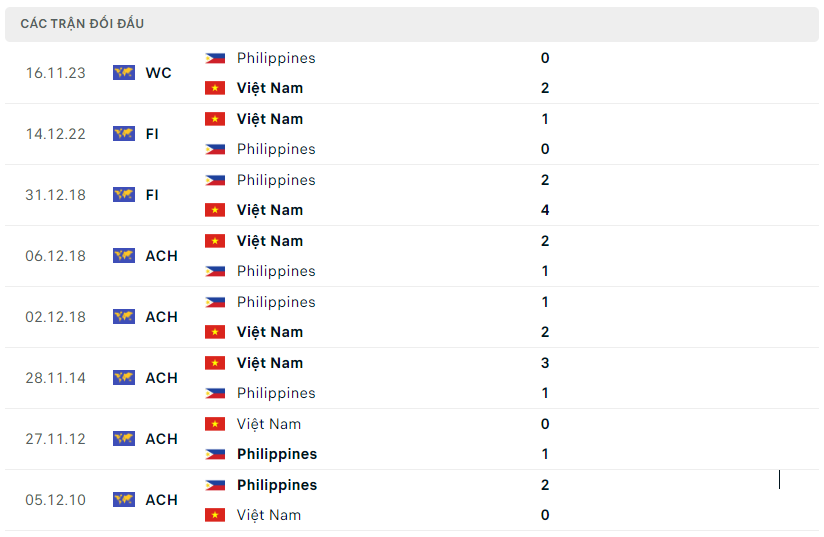 Lịch sử đối đầu, phong độ Việt Nam vs Philippines