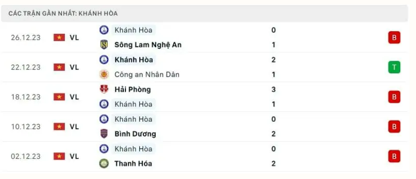 Phía bên kia, Khánh Hòa thậm chí còn thê thảm hơn đối thủ khi chỉ mới giành được 6 điểm sau 8 trận đấu và đứng thứ 13 trên bảng xếp hạng. Nếu không cải thiện phong độ, khả năng cao Khánh Hoà sẽ phải chia tay V-League sau mùa giải này.