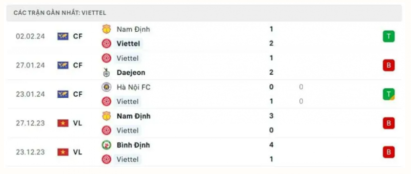 Theo thống kê, trong 5 lần đụng độ gần nhất, Viettel bất bại cả 5 với 4 chiến thắng và 1 trận hoà. Lần gần nhất hai đội đối đầu là vào tháng 6/2023. Trong trận đấu đó, cả hai chấp nhận chia điểm với kết quả hoà 0-0.
