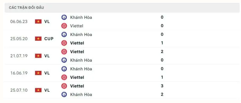 Phong độ, lịch sử đối đầu Viettel vs Khánh Hòa.