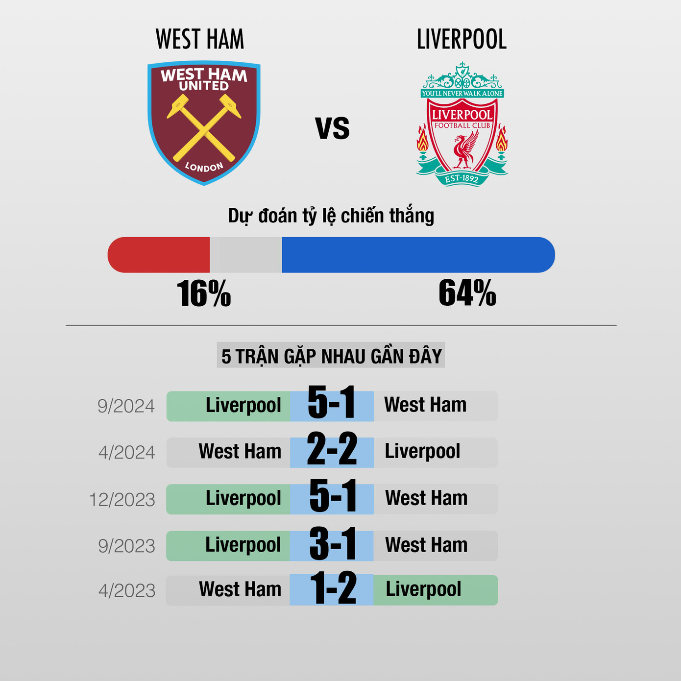 Ở trận gần nhất Liverpool làm khách đến sân Olympic, "The Kop" bị cầm hòa 2-2. Đây là lời nhắc nhở cho thầy trò HLV Slot nhập cuộc với tâm thế cẩn trọng, khi sự thất thường của West Ham ở mùa này chính là thứ khiến đối thủ phải e dè họ. Trong ngày đẹp trời, West Ham có thể khiến bất kỳ CLB nào ôm hận ở "sào huyệt" của họ.