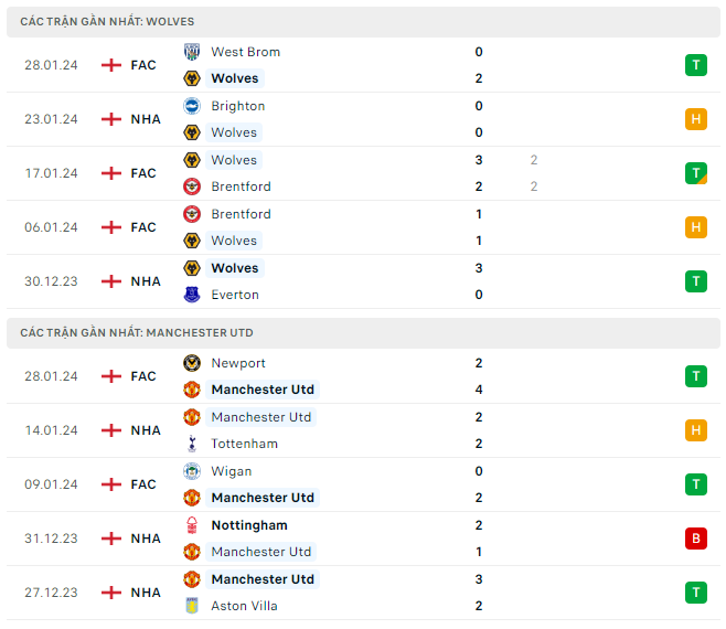 Trái ngược với MU, Wolves đang chơi cực kỳ ổn định cho dù có lực lượng yếu hơn đáng kể. Đội bóng của HLV Gary O'Neil đang sở hữu chuỗi 7 trận bất bại liên tiếp trên mọi đấu trường (thắng 5, hòa 2). Trong đó, họ thắng cả các đối thủ khó chịu như Chelsea, Brentford và Everton.