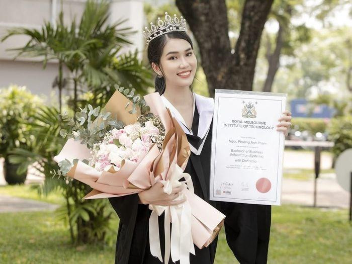 Á hậu Phương Anh cũng được khen là mỹ nhân có học lực rất đáng nể với thành tích học tập ngang ngửa Lương Thùy Linh. Bằng chứng là cô đã tốt nghiệp thủ khoa ngành Hệ thống quản lý thông tin của trường Đại học RMIT.