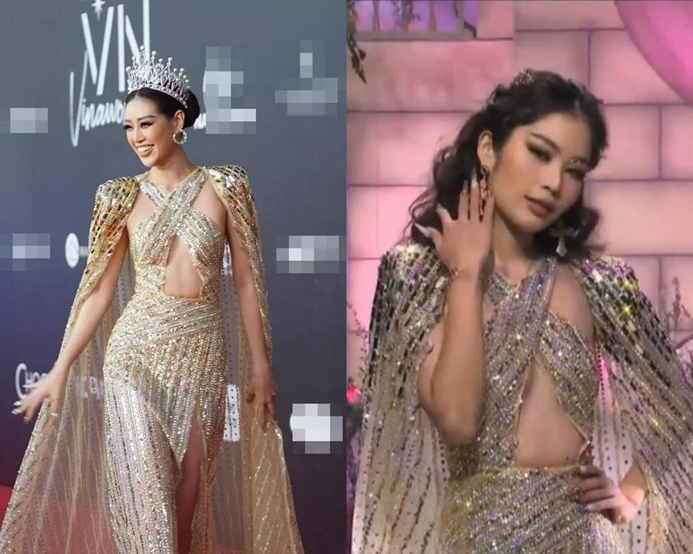Dù đụng hàng với Hoa hậu Khánh Vân trong chiếc váy ánh kim lộng lẫy nhưng Nam Anh không hề kém cạnh. Tạo hình công chúa cổ tích này đã giúp chị gái của Nam Em được khen ngợi hết lời.