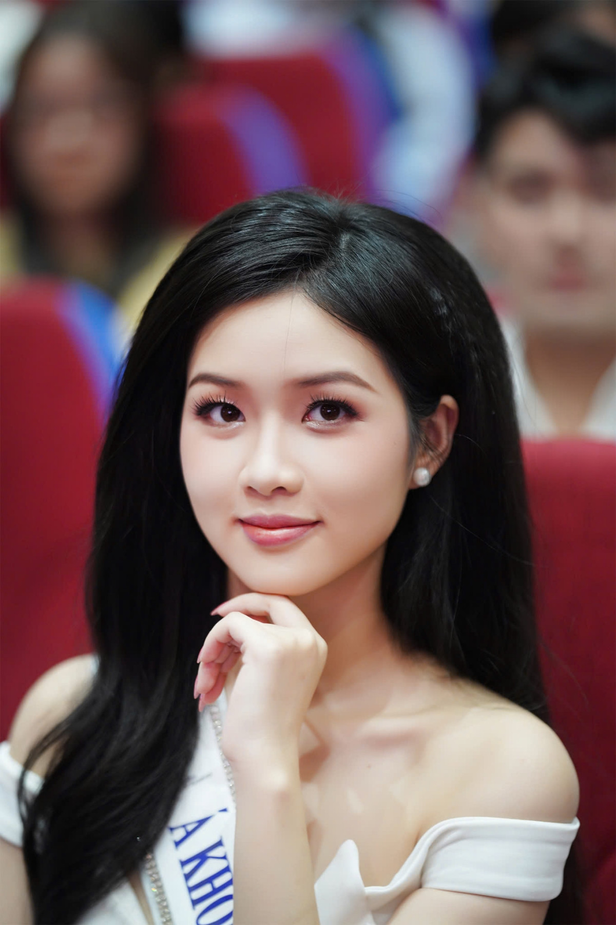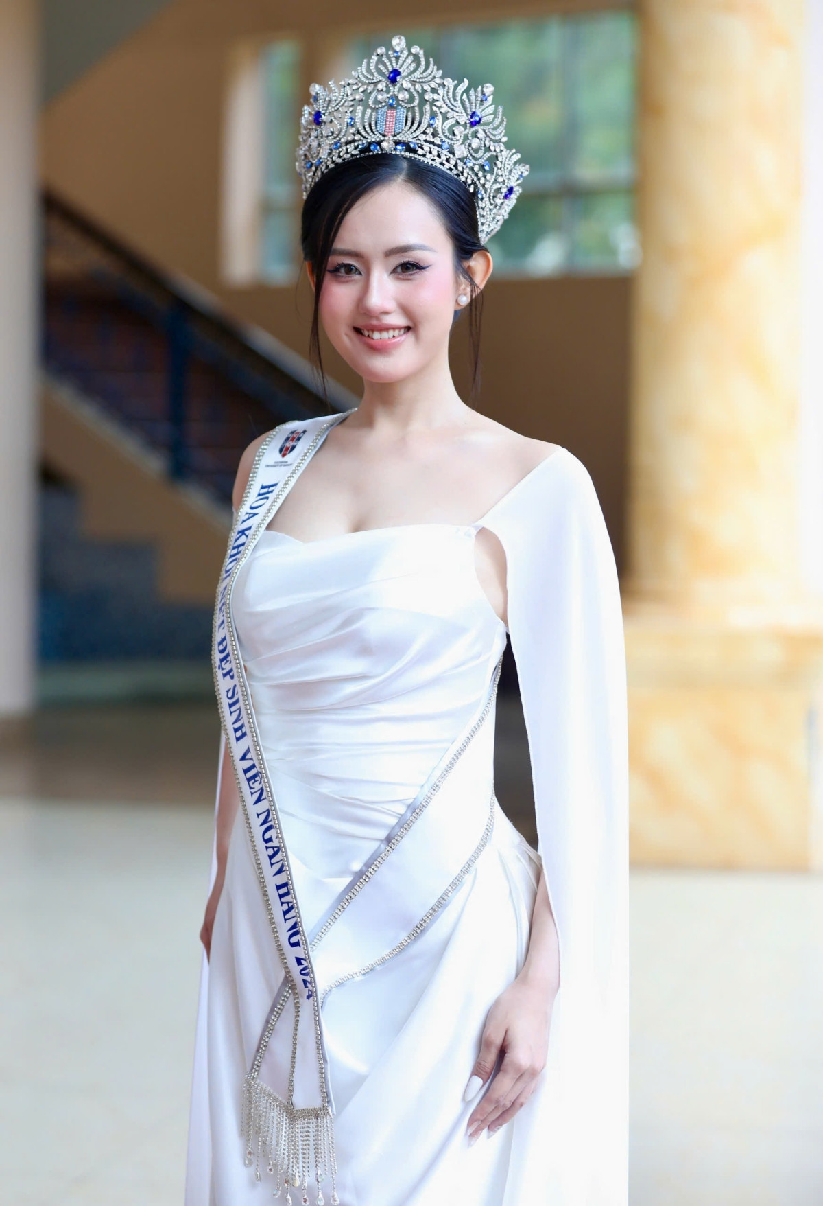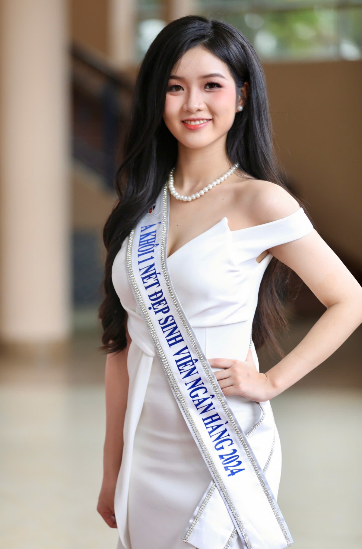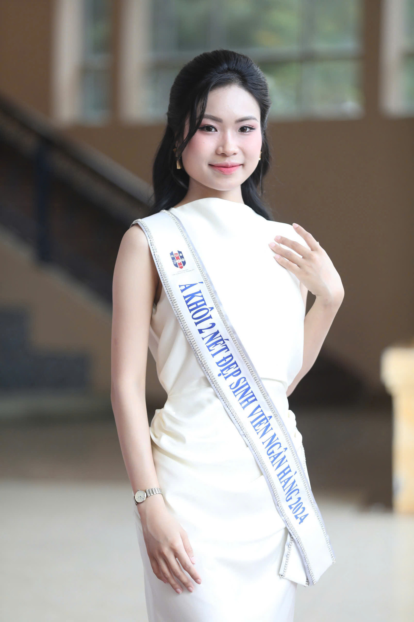 Võ Anh Thư, sinh viên năm thứ 2 ngành Quản trị Kinh doanh vừa trở thành tân Hoa khôi Nét đẹp Sinh viên Ngân hàng 2024. Cô bạn chia sẻ: “Hoa hậu Việt Nam là cuộc thi danh giá và lâu đời nhất trong bản đồ nhan sắc của nước nhà. Theo dõi hành trình của nhiều người đẹp tại cuộc thi, tôi dành sự ngưỡng mộ cho Á hậu Phương Anh, Á hậu Ngọc Hằng và đặc biệt là Hoa hậu Thanh Thủy. Họ đều là những cô gái xinh đẹp, tài năng và nhân ái.”