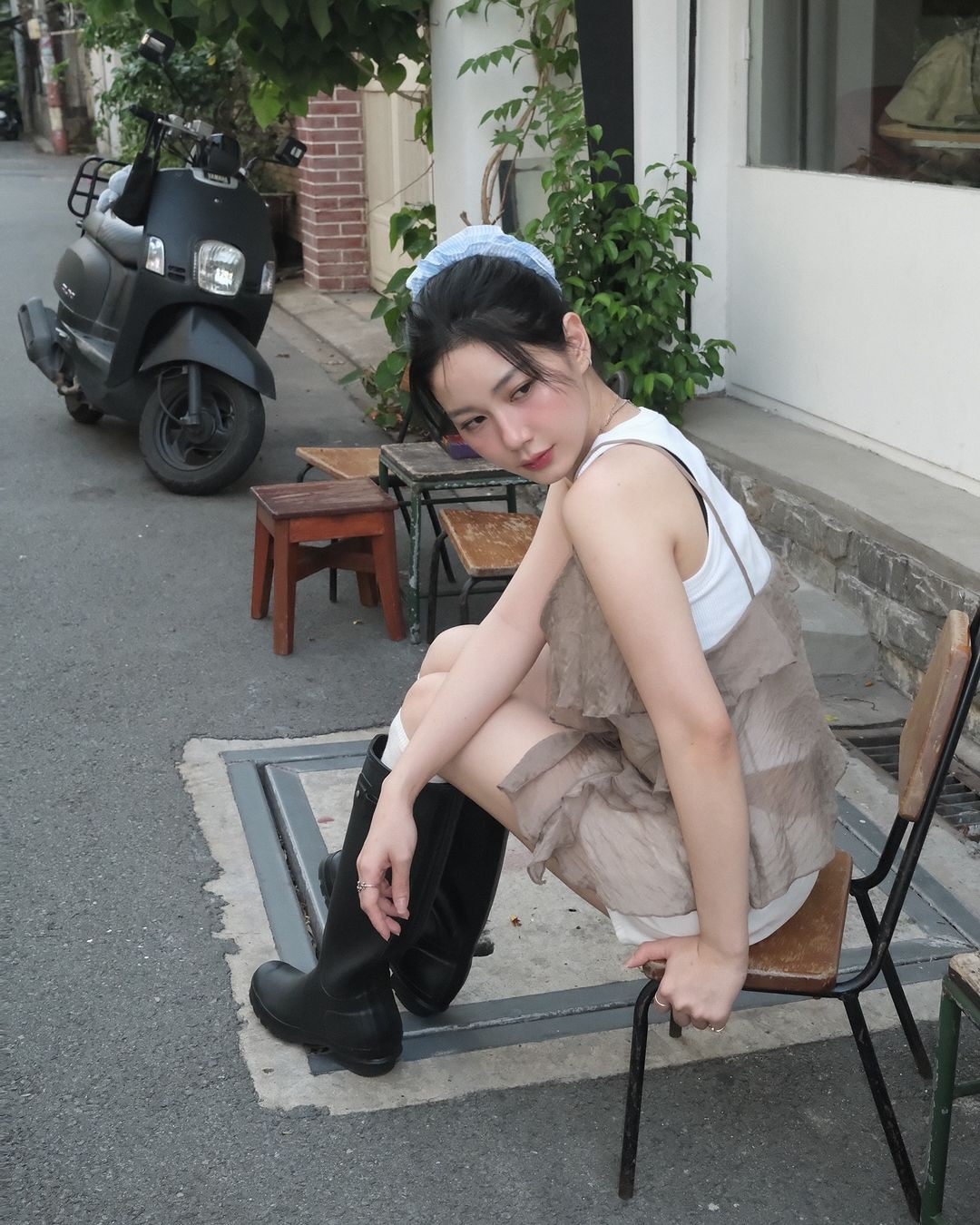 Hotgirl Kim Boo Phạm có hơn 71K người theo dõi trên Instagram, sở hữu gu thời trang cá tính, năng động. Cô bạn ưa chuộng trang phục tông màu trắng, đen, be tạo điểm nhấn với phụ kiện tóc, túi xách lạ mắt.