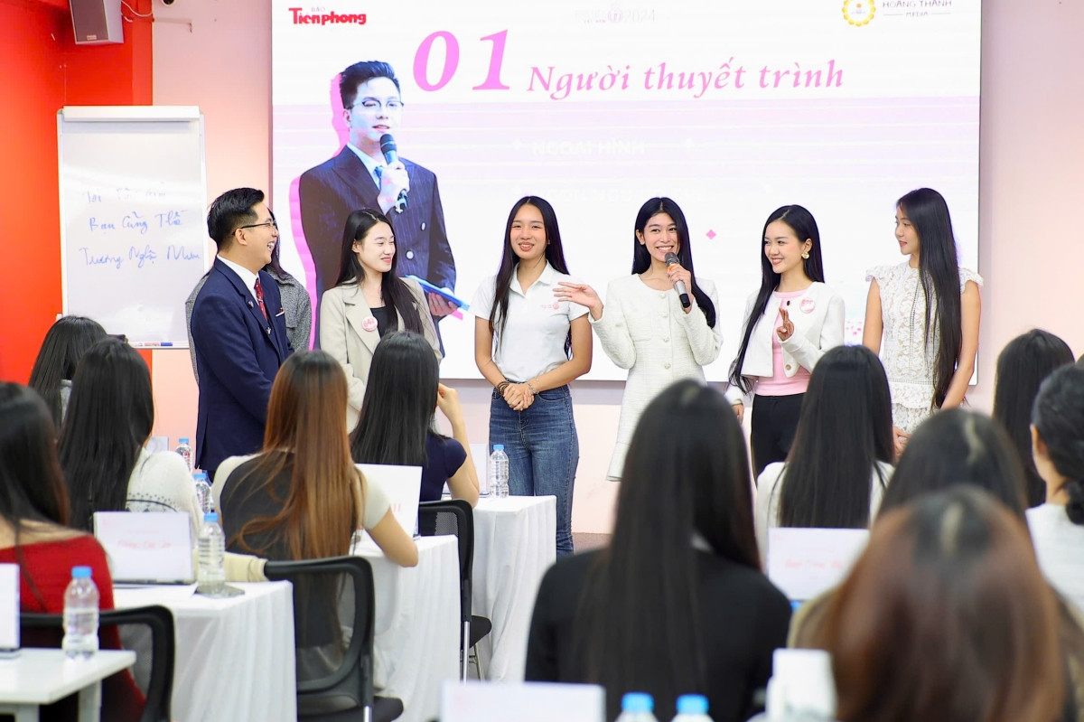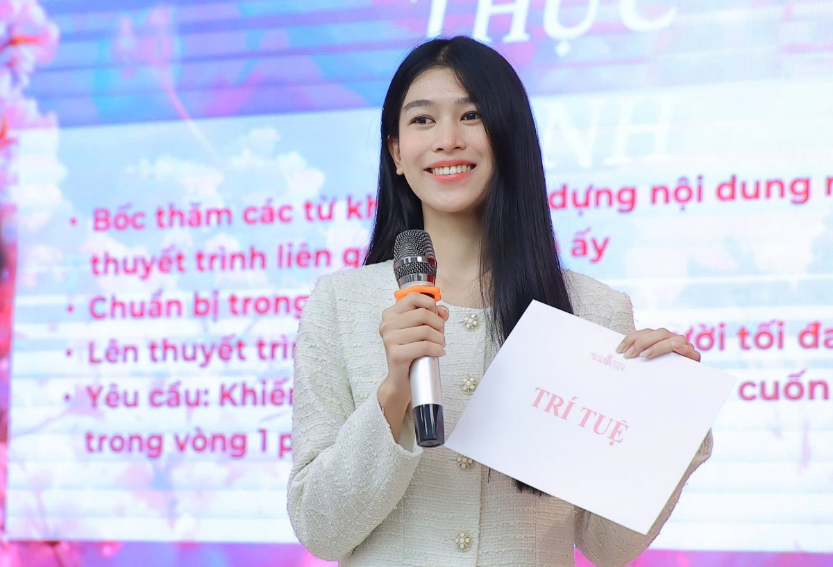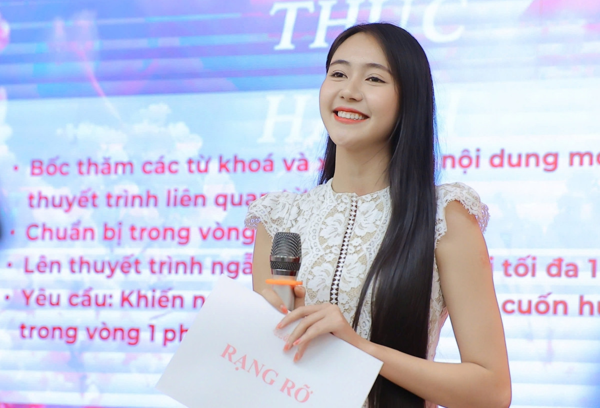 Chiều ngày 1/4, các thí sinh được học cách thuyết trình. Sau khi được nghe các bước cơ bản nhất để hoàn thành một bài thuyết trình hiệu quả, các cô gái bốc thăm chủ đề và chuẩn bị bài thuyết trình trong 5 phút.