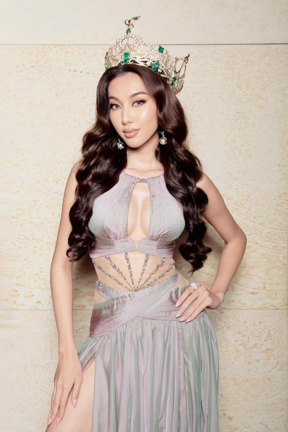 Hoa hậu Thùy Tiên lựa chọn thiết kế dạ hội cắt xẻ táo bạo nhưng vẫn vô cùng thướt tha, người đẹp trang điểm tông màu nude mà vẫn cực kỳ sắc sảo, đúng chuẩn của các người đẹp Latin ở các đấu trường nhan sắc.