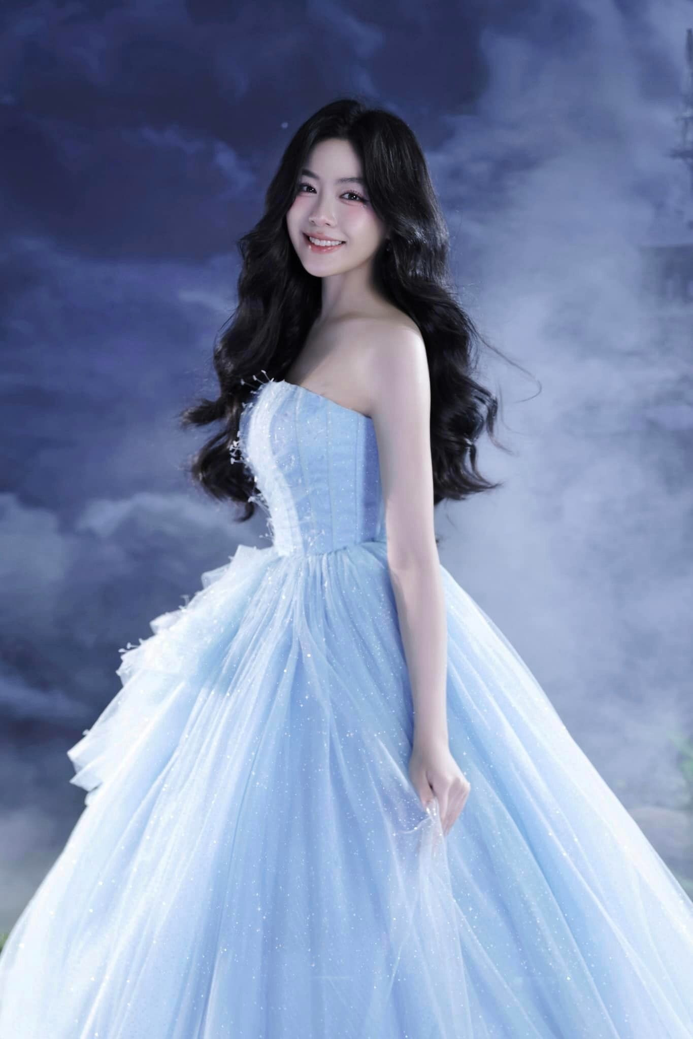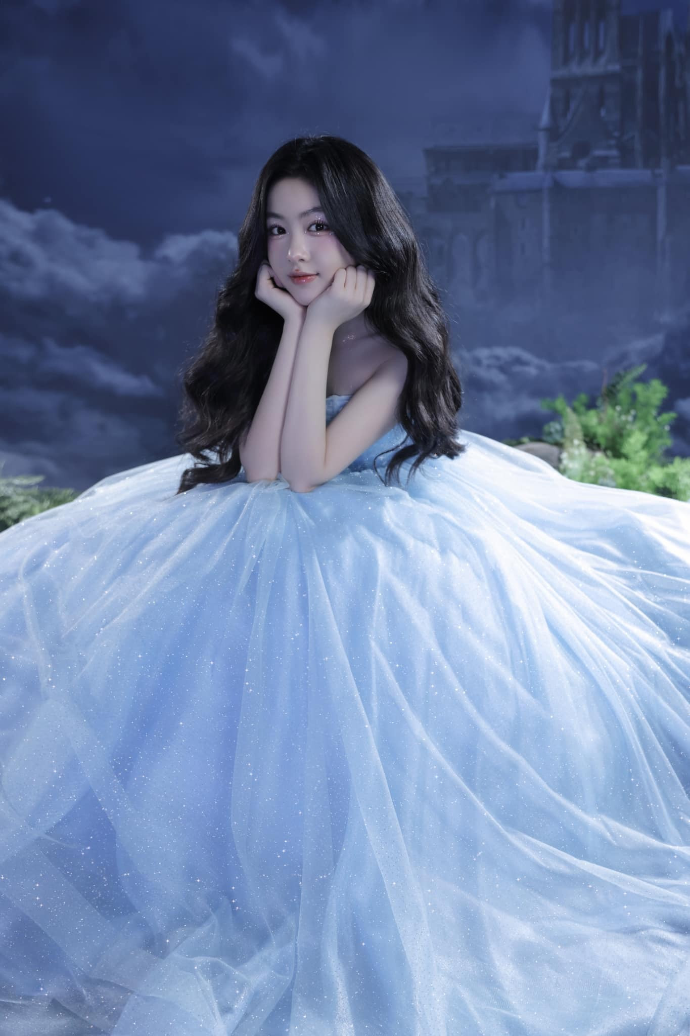 Lọ Lem của năm 18 tuổi lại hóa thành chính mình, tức công chúa Lọ Lem của thế giới cổ tích. Bộ váy màu xanh nhạt đính pha lê lấp lánh cùng đôi giày thủy tinh đã biến con gái MC Quyền Linh thành cô gái bước ra từ những câu chuyện kể.
