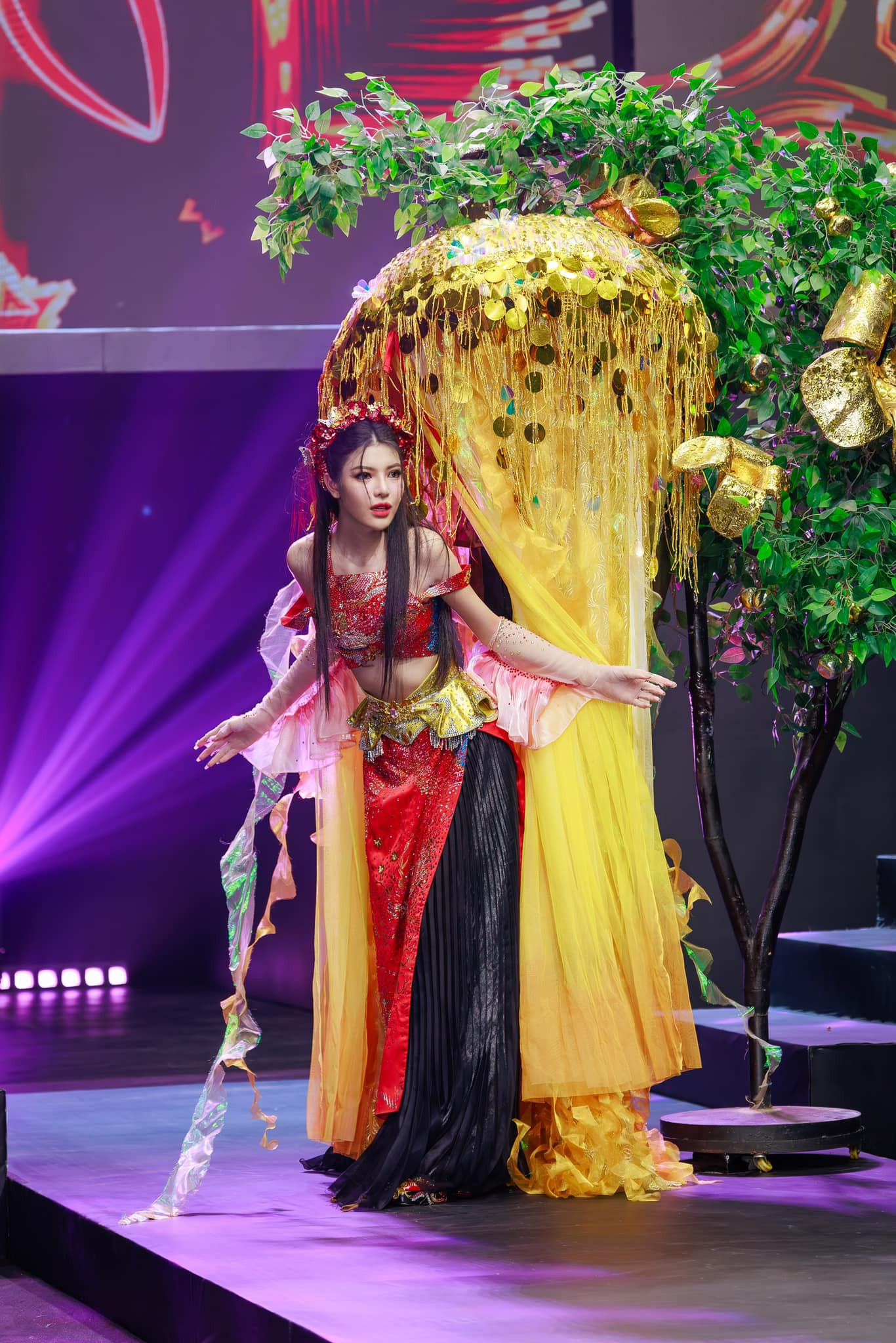 Tường San cho đây là hành trình “nhớ đời”, khi tạo nên bước ngoặt cho bản thân cô. ‘Mỹ nhân’ này còn gây chú ý với bộ trang phục văn hóa dân tộc “Thị ơi mở ra” của nhà thiết kế Trần Khánh Duy, với vẻ đẹp đầy dịu dàng kết hợp cùng những bước catwalk nữ tính.