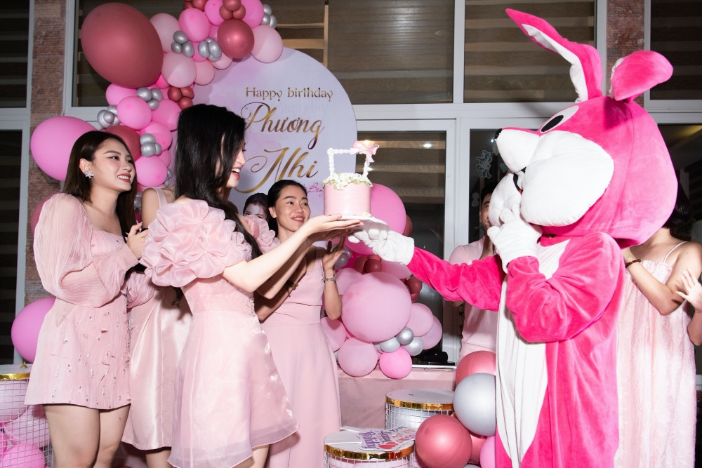 Mới đây, Á hậu Phương Nhi vừa được tổ chức bữa tiệc sinh nhật ấm cúng tại Vũng Tàu. Buổi tiệc được trang trí với tone màu hồng chủ đạo, nàng hậu xuất hiện rạng rỡ với chiếc đầm màu hồng trong trẻo, đậm chất nàng thơ.