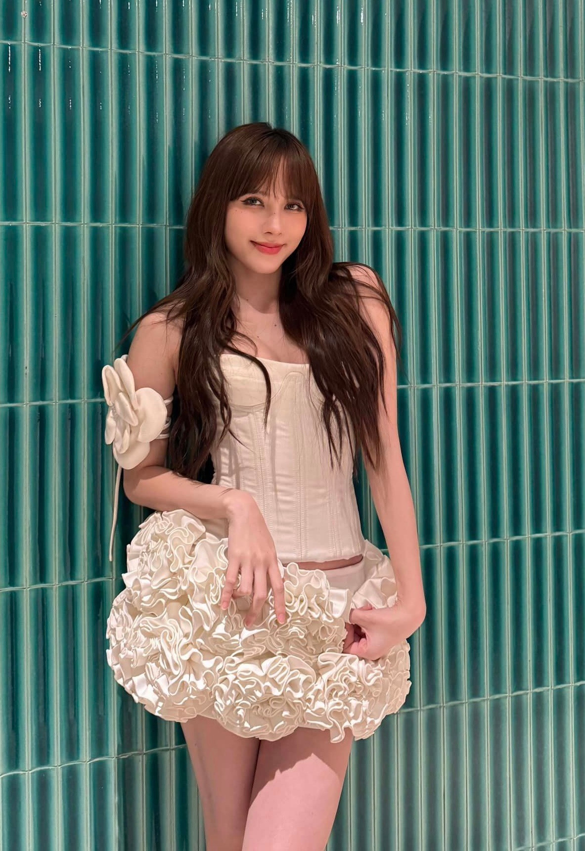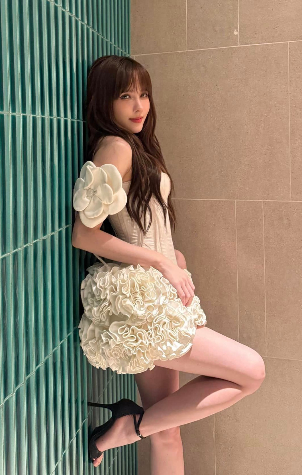 Cô mặc bộ váy cúp ngực ngắn, khoe thân hình mảnh mai với tỷ lệ cơ thể cực đẹp. Nhờ đôi chân dài miên man mà ai cũng nghĩ Thiều Bảo Trâm cao trên 1m70 trong khi thực tế cô cao 1m67. Nhưng bất ngờ nhất là gương mặt của Thiều Bảo Trâm được khen ngày càng xinh như búp bê, thần thái dịu dàng.