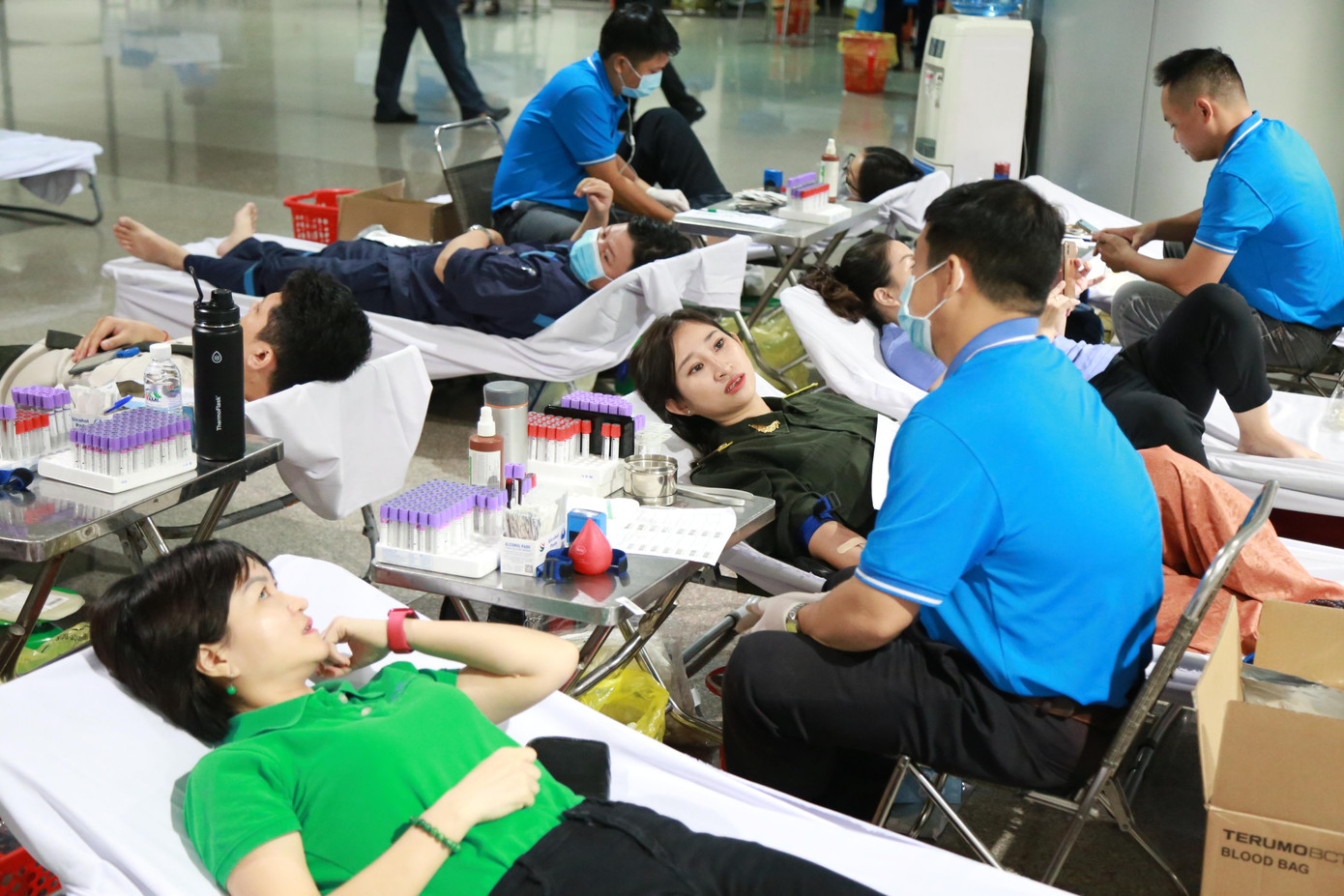 | Từ sáng sớm, rất đông cán bộ, nhân viên và người lao động đang làm việc tại Sân bay quốc tế Tân Sơn Nhất đã tề tựu chuẩn bị hiến máu. |