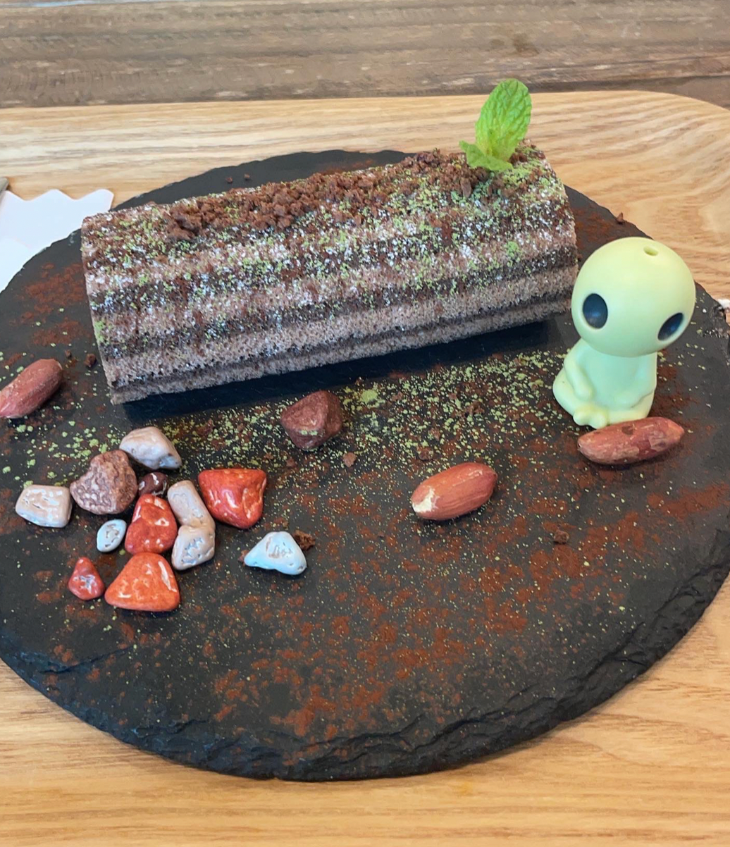 | Mộc linh Kodama được trang trí cùng dây leo trên trần quán. (Ảnh: @moricafe_kodama) |