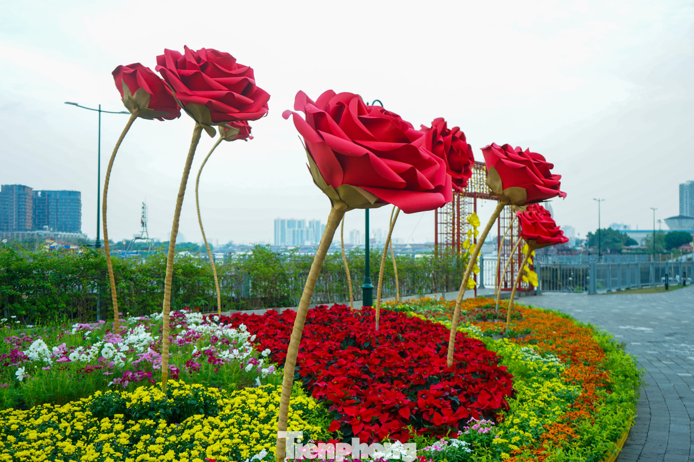 | Ghi nhận tại khu vực Công viên bến Bạch Đằng (phường Bến Nghé, quận 1), hai tiểu cảnh mô phỏng vườn hoa mini cũng được dựng lên từ trước đó để người dân và du khách có thể chụp ảnh kỷ niệm. |