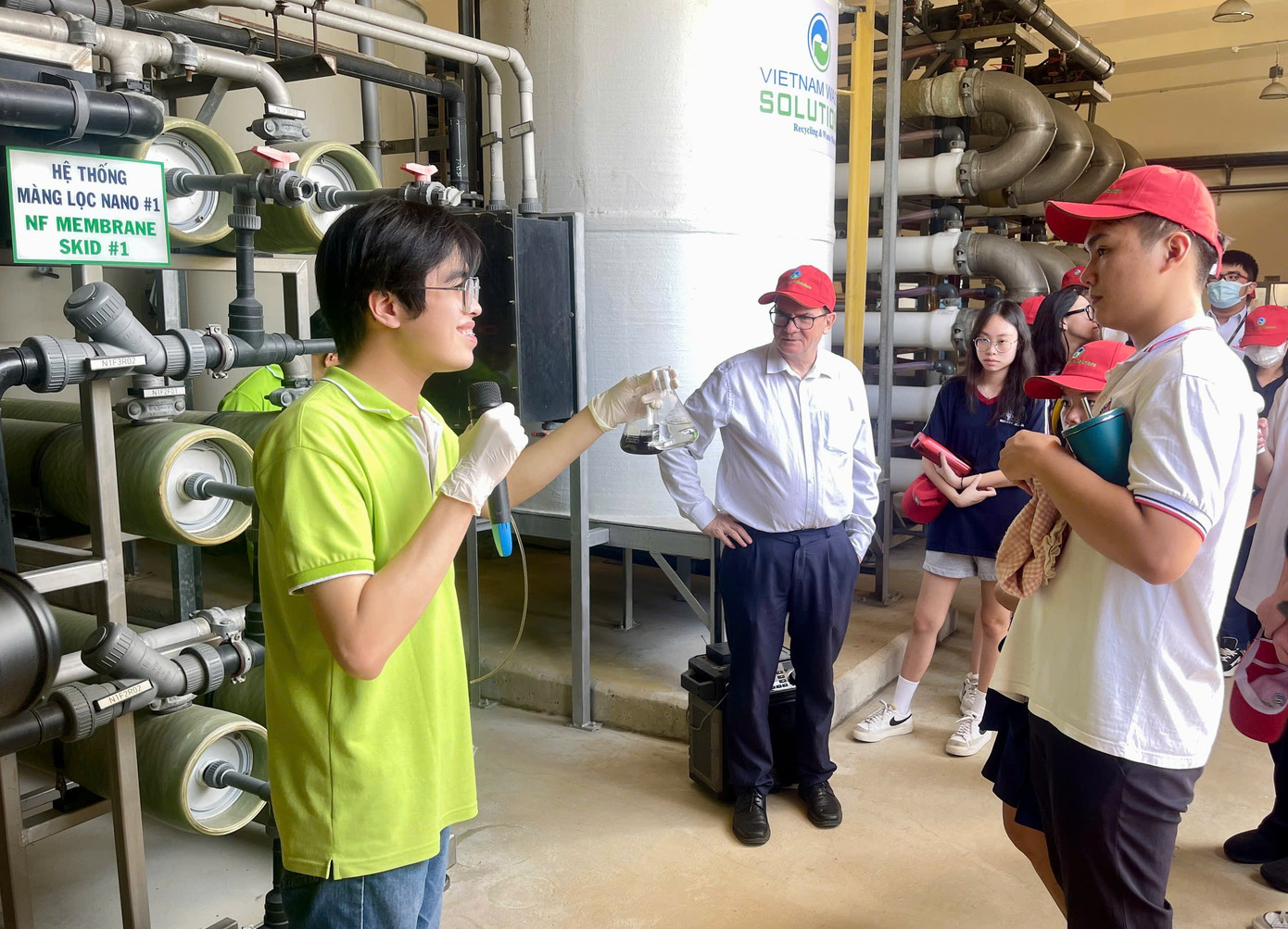 Tiếp đoàn học sinh Trường Quốc tế Bắc Mỹ, ông Kevin Moore, Giám đốc Điều hành Công ty TNHH Xử lý chất thải Việt Nam (VWS) bày tỏ niềm vui chào đón các bạn học sinh – những người chủ tương lai của đất nước. Tại đây, ông Kevin Moore đã giới thiệu về quá trình thành lập và quy trình xử lý chất thải tại Khu liên hợp xử lý chất thải Đa Phước thuộc VWS (huyện Bình Chánh, TPHCM) như: nhà máy xử lý nước rỉ rác, nhà máy thu và phát điện từ khí gas của bãi chôn lấp, nhà máy tái chế...