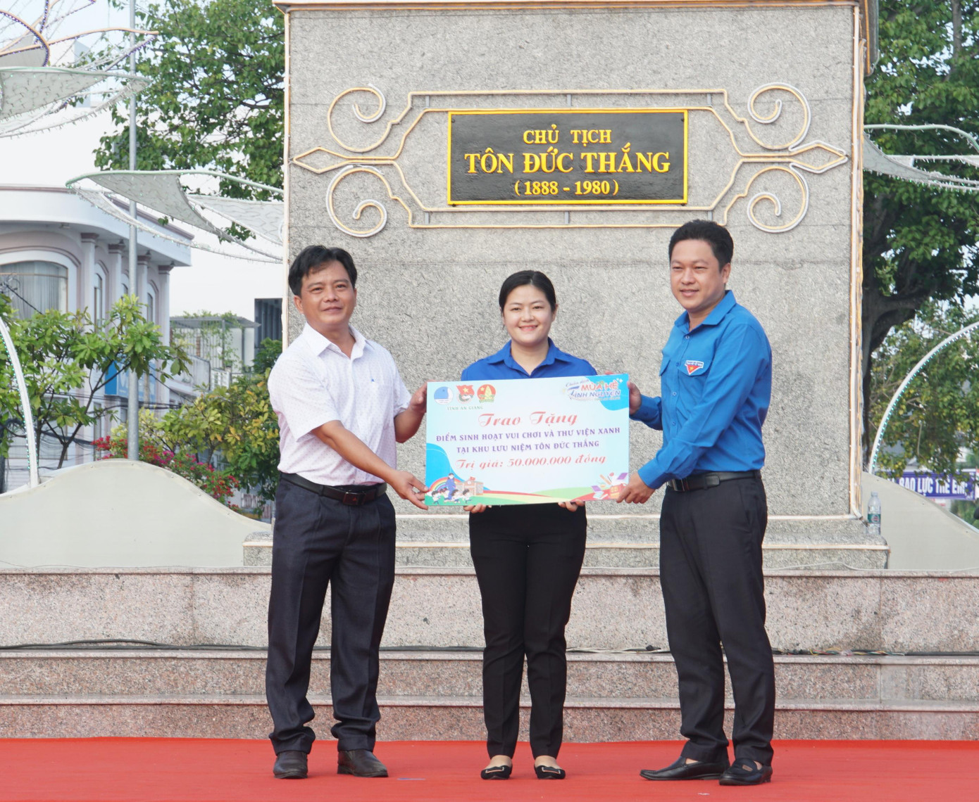 Dịp này, Hội đồng Đội Trung ương và Cty Cổ phần sữa Quốc IDP trao tặng 36 thùng sữa và 15 bộ dụng cụ học tập cho thiếu nhi mồ côi do dịch COVID - 19 trên địa bàn tỉnh. Tỉnh Đoàn - Hội đồng Đội tỉnh trao tặng công trình Không gian đọc sách và sinh hoạt Đội cho Nhà thiếu nhi tỉnh, trị giá 50 triệu đồng; trao tặng công trình điểm sinh hoạt vui chơi và thư viện xanh cho Khu lưu niệm Chủ tịch Tôn Đức Thắng, xã Mỹ Hòa Hưng trị giá 50 triệu đồng. BIDV Chi nhánh An Giang trao tặng 5 suất tiền mặt, mỗi suất trị giá 20 triệu đồng cho 5 em thiếu nhi mồ côi do dịch COVID-19… Ngoài ra, Ban tổ chức còn trao tặng 117 phần quà, 4 suất hỗ trợ cho thiếu nhi mồ côi, 10 chiếc xe đạp cho thiếu nhi trên địa bàn TP Long Xuyên.