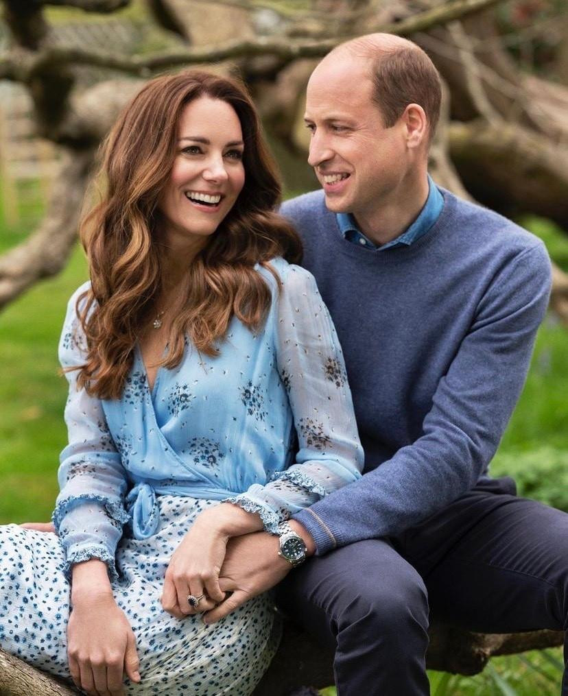 Trong hai bức ảnh mà Công nước Kate và Hoàng tử William chia sẻ nhân dịp kỷ niệm 10 năm ngày cưới, hai vợ chồng mặc trang phục màu xanh da trời. Đây cũng là màu sắc yêu thích của Hoàng gia Anh, là tông màu có nhiều nhất trong tủ đồ của nhà William - Kate.