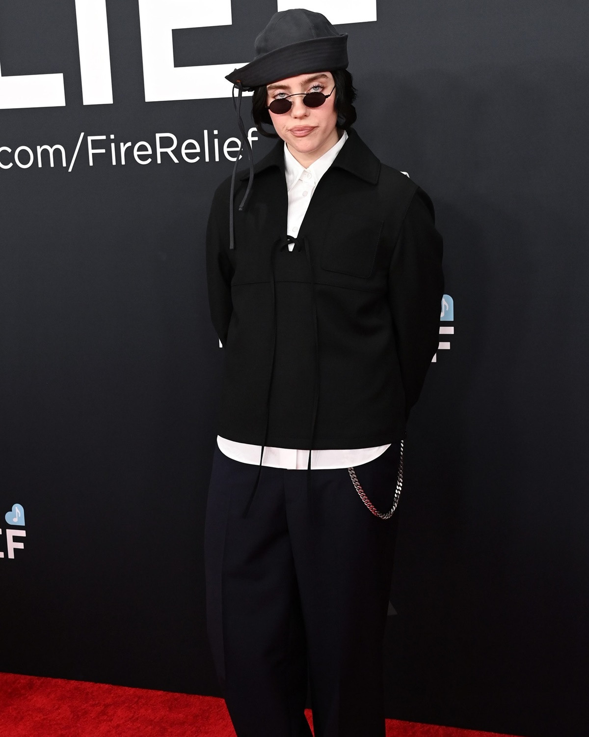 Billie Eilish trung thành với phong cách tomboy, bộ trang phục đến từ nhà mốt Prada.
