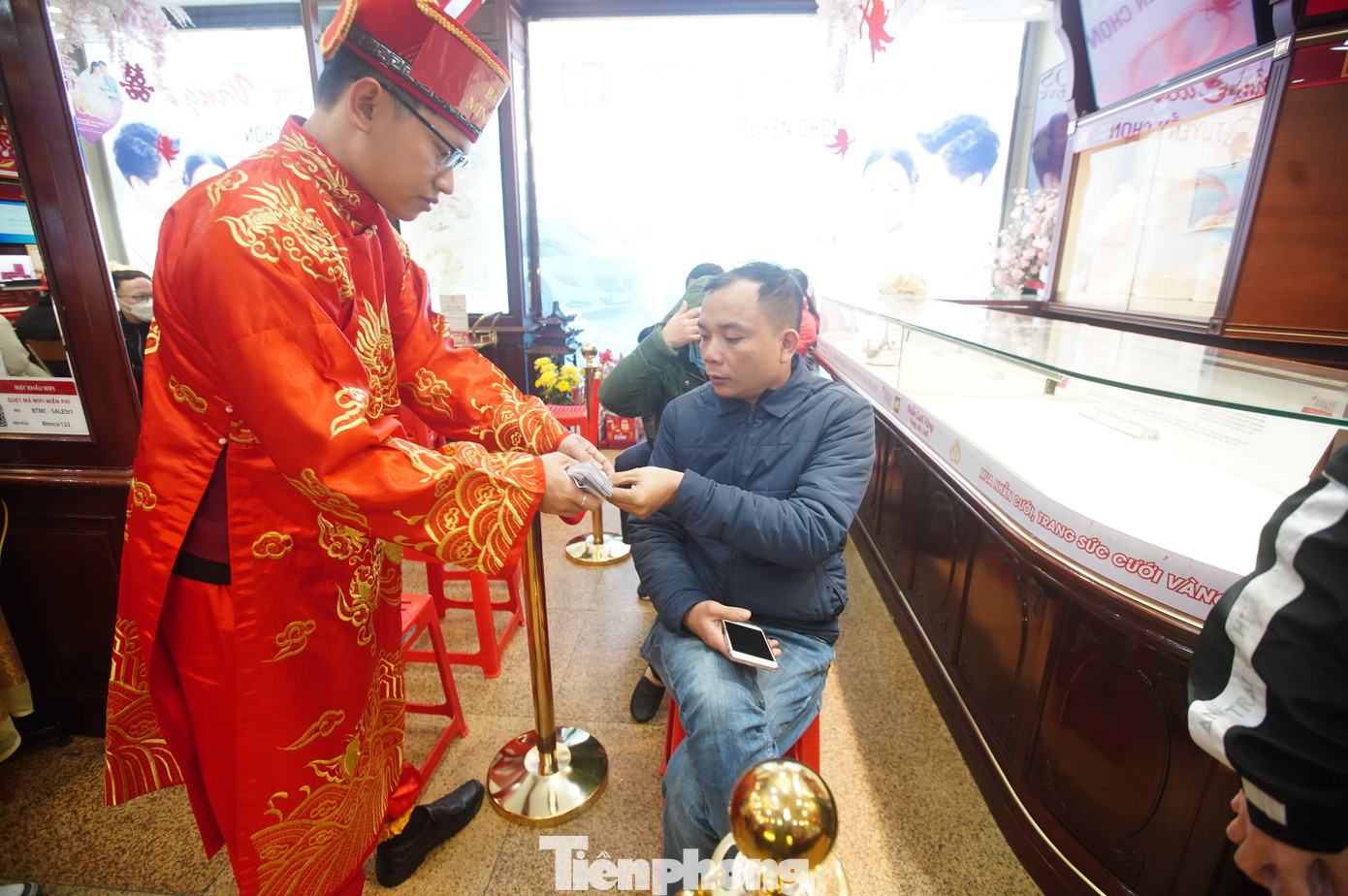 Ông Bình (Đống Đa) cho biết, năm nay chú mua 2 chỉ vàng: "Tôi đã duy trì mua vàng Thần tài từ năm 2010 đến nay, năm nay là người thứ 2 vào mua vàng tại cửa hàng trên phố Trần Nhân Tông".