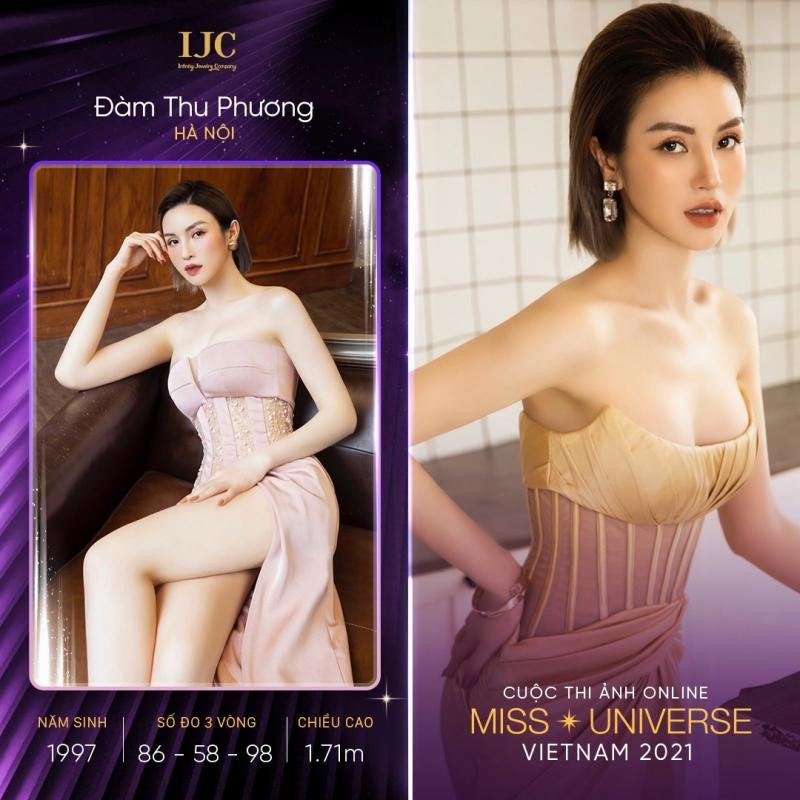 Hiện đang là người mẫu tự do, thí sinh Đàm Thu Phương, sinh năm 1997 đến từ Hà Nội. Tham gia cuộc thi ảnh online Hoa hậu Hoàn vũ Việt Nam 2021, Thu Phương mong muốn thông qua cuộc thi, có thêm sự tự tin, mạnh mẽ. Thu Phương cao 1m71, số đo hình thể 86-58-98.