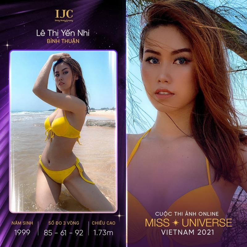 Thí sinh Lê Thị Yến Nhi đến từ Bình Thuận, sinh năm 1999. Sở hữu vóc dáng lý tưởng 85-61-92, chiều cao 1m73, thế nhưng Yến Nhi từng tự ti không đủ can đảm đăng ký tham gia Hoa hậu Hoàn vũ Việt Nam. Chính mẹ là người ủng hộ, động viên Yến Nhi tham gia cuộc thi lần này.
