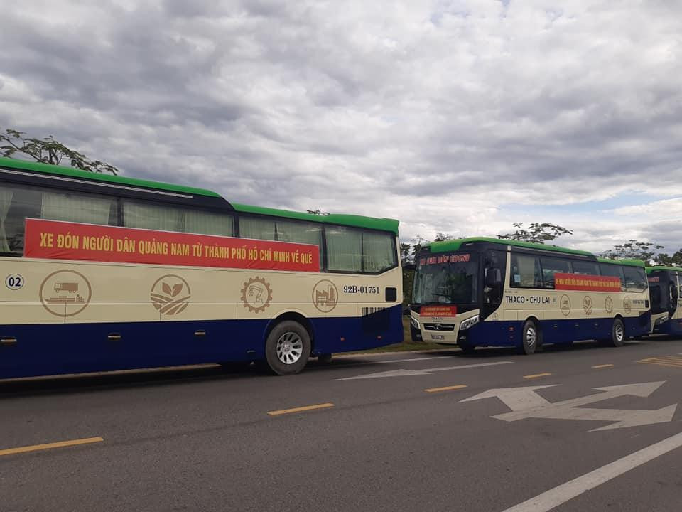 | Sáng 21/7, đoàn xe từ Tam Kỳ (Quảng Nam) cũng đã lên đường vào TP.HCM đón người dân về quê giữa lúc bùng dịch. (Ảnh: Công Trình) |