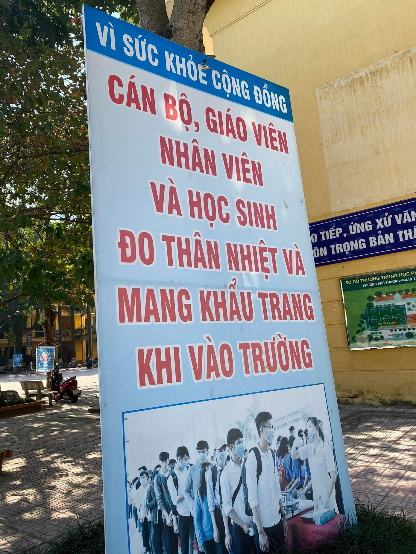 Với gần 2.000 học sinh, Trường THPT Tây Hồ tính toán sẽ phân 5 làn cho các em đo nhiệt độ, sát khuẩn tay trước khi vào trường.