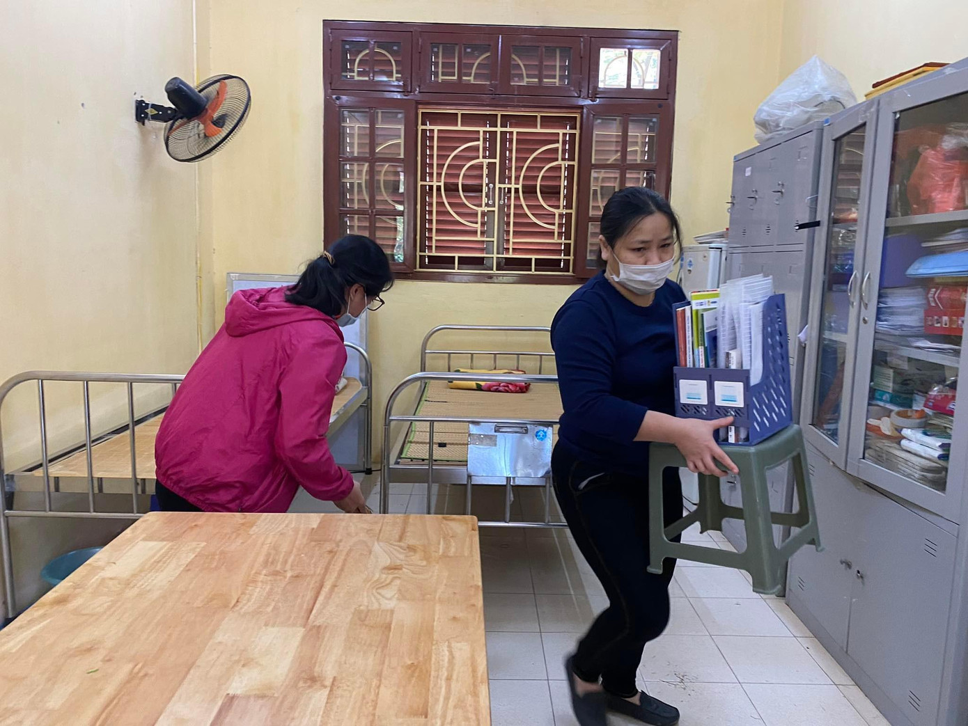 | Nhân viên phòng Y tế dọn dẹp lại phòng. |