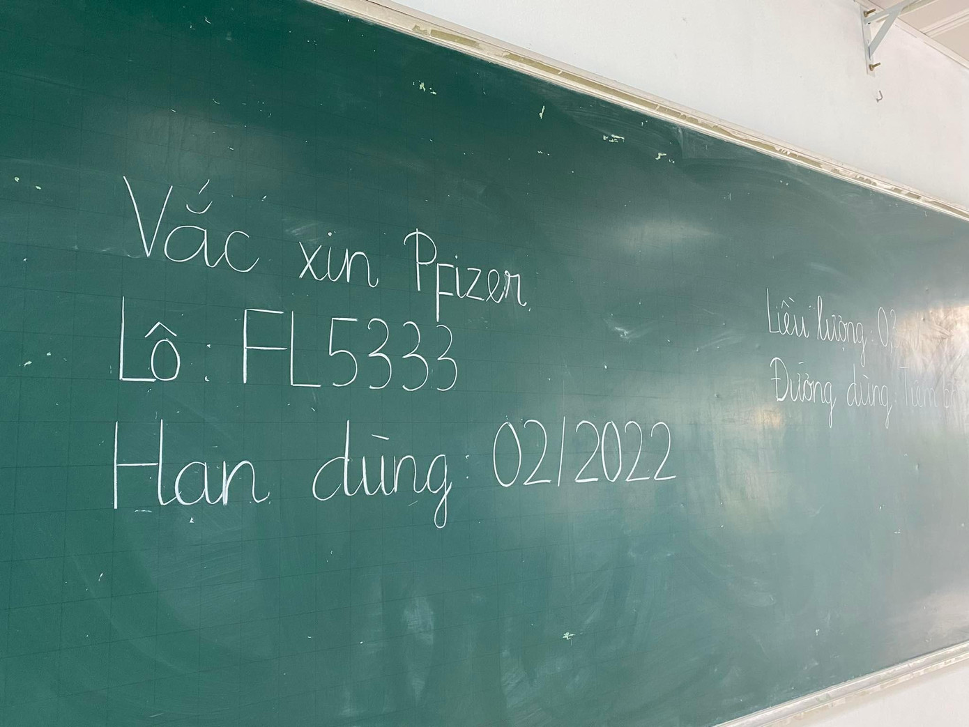 | Để đảm bảo giãn cách, phụ huynh không được vào phòng tiêm tuy nhiên, trước đó họ được thông báo số lô, hạn sử dụng và loại vắc xin con sẽ tiêm. |