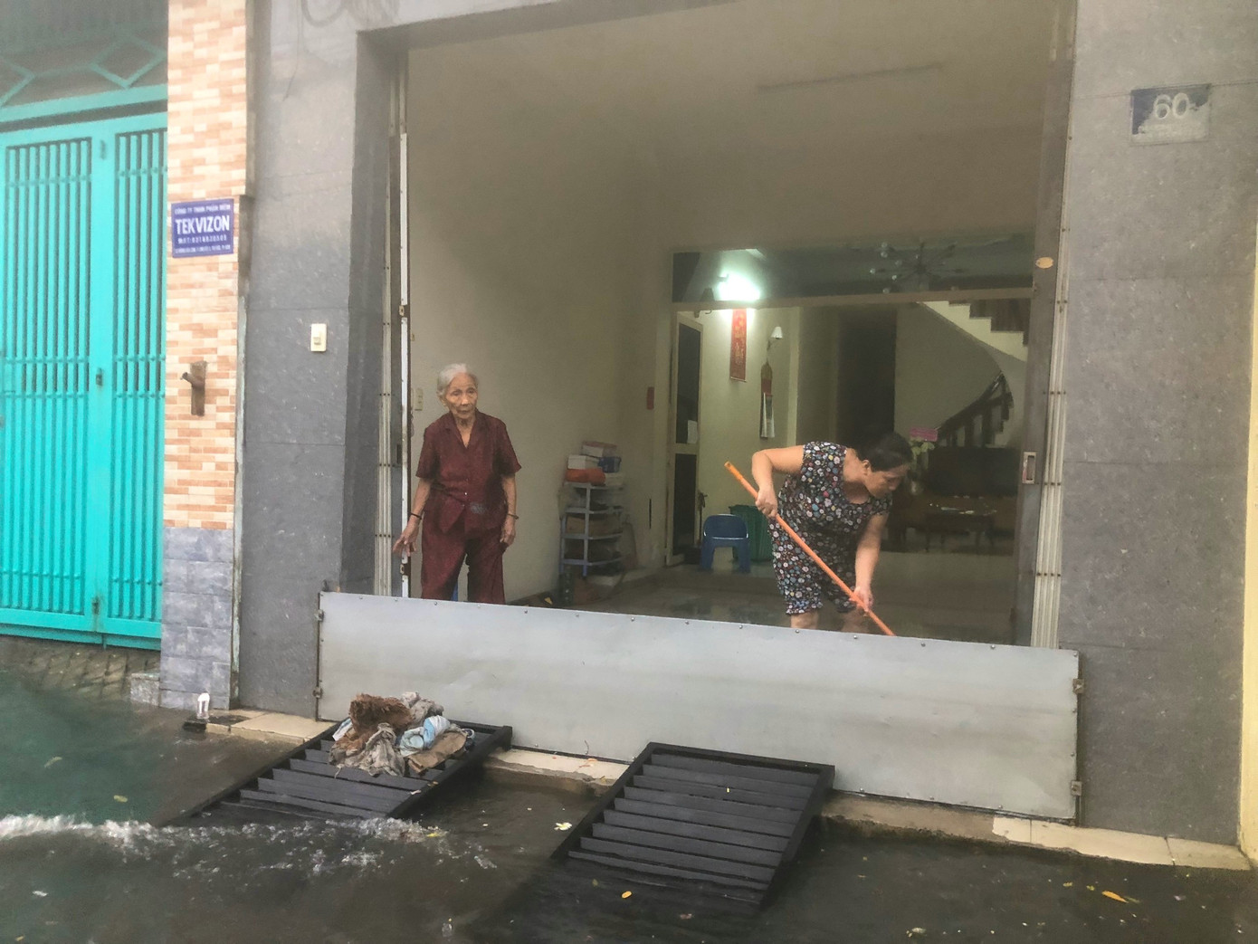 | "Bình thường khi ngập do mưa thì nước sẽ rút nhanh, tầm khoảng 30 phút sau mưa nước sẽ rút dần. Nhưng khi vừa có mưa to, vừa kết hợp triều cường thì nước sẽ thoát chậm, thời gian ngập nước sẽ lâu hơn"- ông Trịnh Minh Hoàng (người dân sống ở khu vực) chia sẻ. |