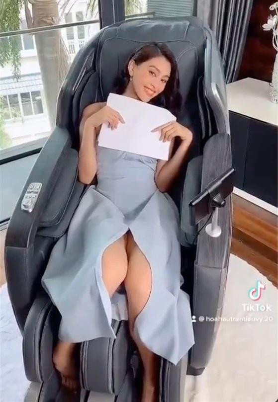 Nhưng khi Tiểu Vy ngồi thư giãn trên chiếc ghế mát xa thì cô suýt chút nữa đã gặp sự cố chỉ vì đường xẻ cao vút. Nhiều người cho rằng Tiểu Vy nên cẩn thận hơn khi mặc những thiết kế tương tự, tốt nhất trợ lý của nàng hậu nên mang theo một chiếc chăn mỏng để che chắn khi cần.
