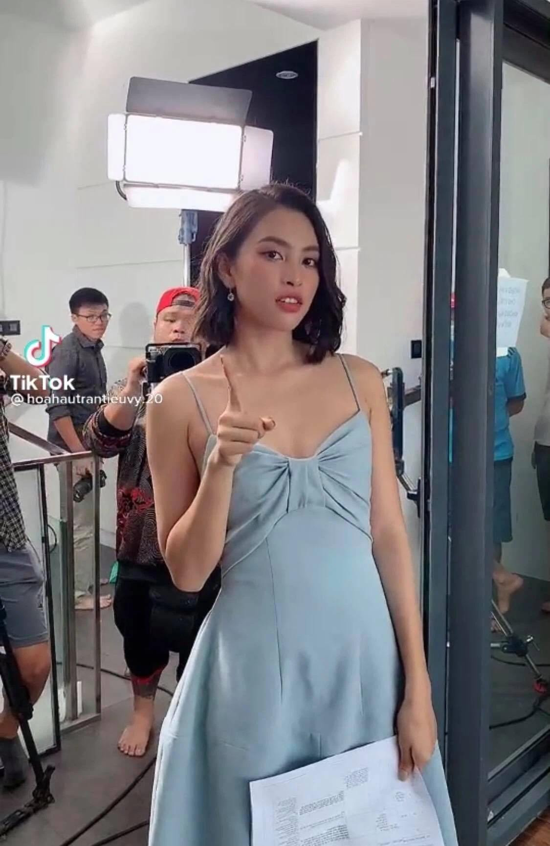 Mới đây, Hoa hậu Tiểu Vy khi tham gia ghi hình đã diện một chiếc váy xẻ cao màu xanh ngọt ngào để khoe trọn vóc dáng cân đối của mình.