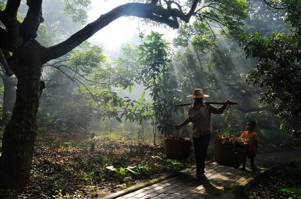Mỗi buổi sáng, khi ngủ dậy mấy anh chị em chúng tôi thường đứng quanh dưới gốc nhặt nhạnh những trái mà chim, dơi mổ rụng xuống khi chúng chưa kịp ăn. Loài dơi, chim quả là tinh khôn, những trái nhãn, vải bị rụng xuống ấy đều chín mọng, thơm ngon.