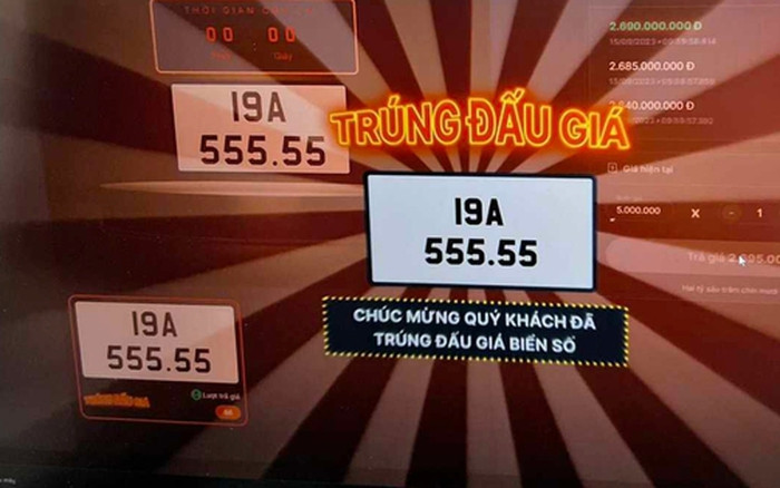 Sau hơn 2 phút, mức giá của biển số 19A-555.55 đã vượt 1 tỉ đồng. Tới khi chốt phiên, giá của nó đạt 2,69 tỉ đồng, cao hơn mẫu SUV Land Cruiser Prado tại Việt Nam vài chục triệu đồng.
