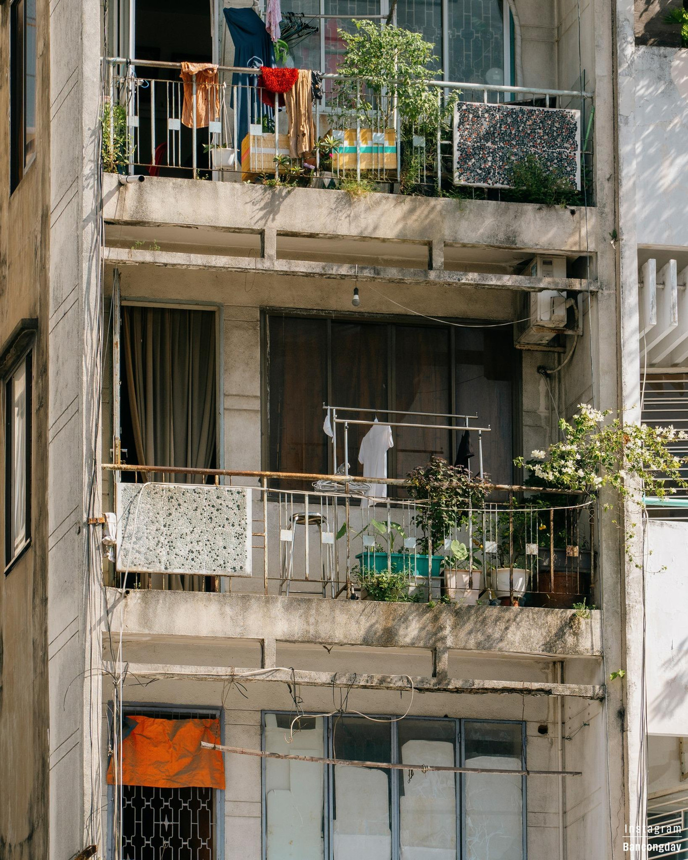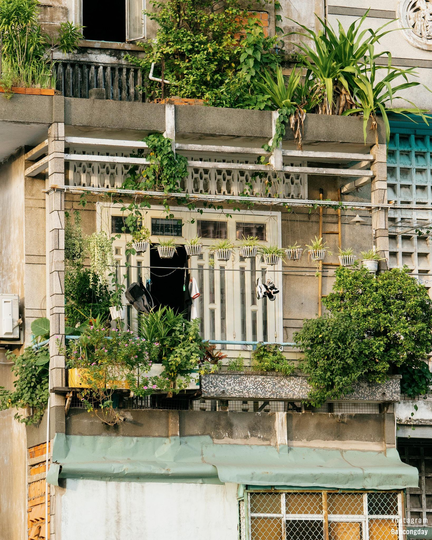 Nép mình giữa những tòa cao ốc hiện đại đang đua nhau mọc lên, những căn nhà mang dấu vết của thời gian với chiếc ban công cũ kỹ dường như chững lại, lưu giữ sự bình yên giữa nhịp sống đô thị hối hả. Như sợ một ngày nào đó vẻ đẹp cổ kính này sẽ dần mai một, ống kính của bạn Sĩ Trần (chủ nhân tài khoản Instagram @bancongday) - một người trẻ hiện đại yêu thích những kiến trúc cổ điển này đã kịp lưu giữ lại vẻ đẹp của những chiếc ban công khác nhau giữa lòng thành phố.