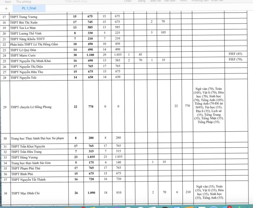 Trong đó, Trường THPT Marie Curie có chỉ tiêu vào lớp 10 cao nhất, với 1.100 chỉ tiêu. Tiếp theo là Trường THPT Mạc Đĩnh Chi với 1.090 chỉ tiêu. Xếp thứ ba là Trường THPT Hùng Vương với 1.035 chỉ tiêu.