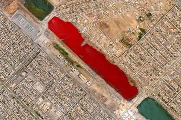 Không ai biết tại sao một hồ nước ở bên ngoài thành phố Sadr (Iraq) lại có màu đỏ rực. Mỗi người suy đoán một kiểu về hiện tượng kỳ bí này nhưng đến giờ vẫn chưa có lời giải thích chính thức.