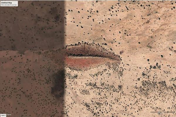 Có một đôi môi khổng lồ, dài gần 1km, trên một ngọn đồi ở Darfur (Sudan). Nhưng có lẽ đôi môi đó chẳng nhắn gửi thông điệp gì hết, vì các nhà khoa học nghĩ rằng nó có thể được hình thành do sự khác biệt về màu sắc của cát mà thôi.
