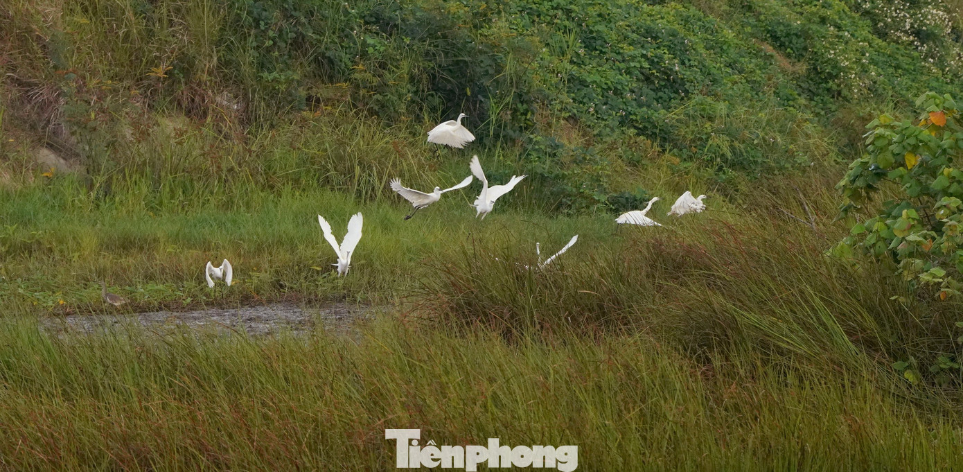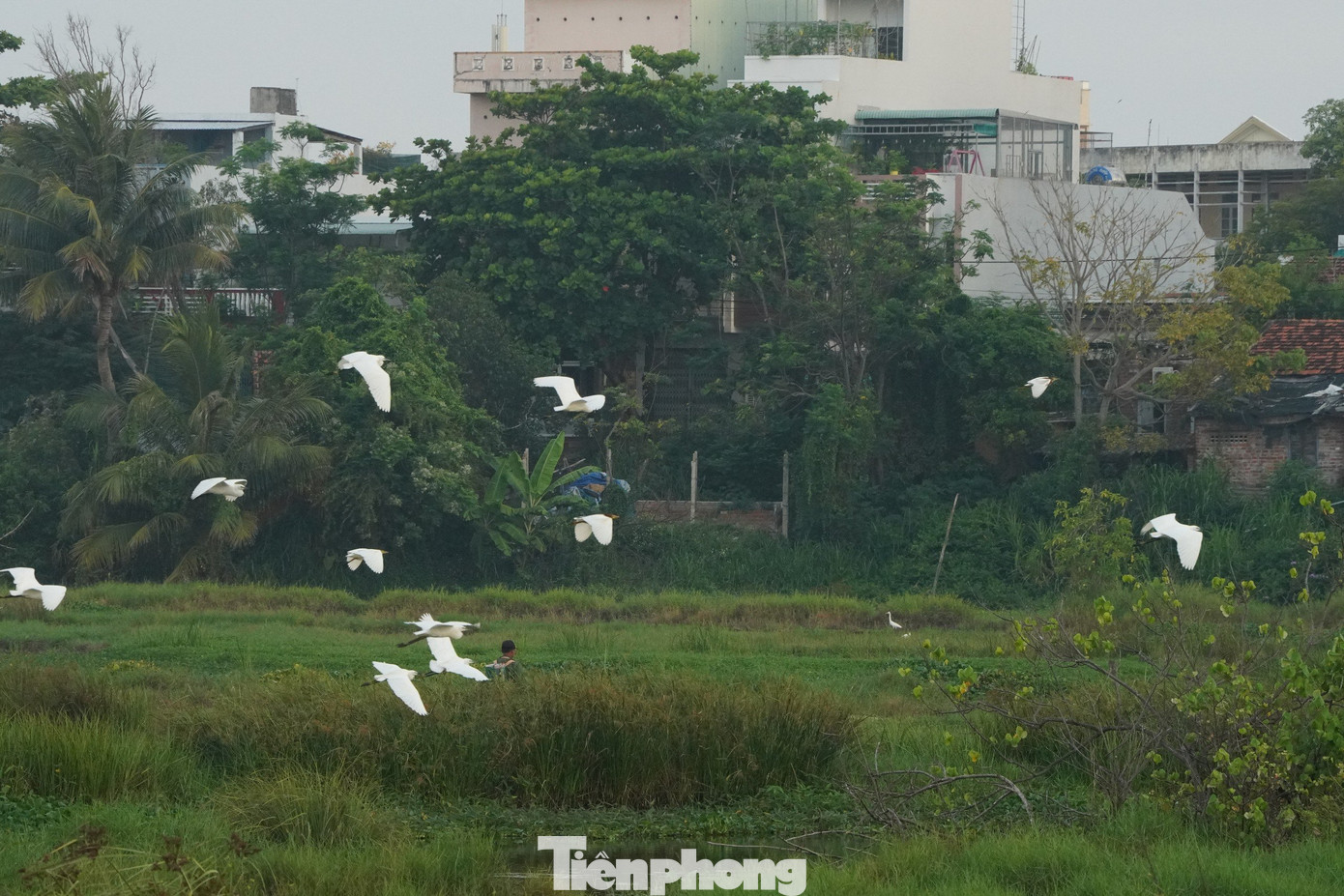 | Thường đàn cò kéo về nơi đây kiếm ăn lúc sáng sớm và chiều tối, các vận động viên trên đường chạy có thể thấy cảnh tượng bình yên này khi tham gia Tiền Phong Marathon. Ảnh: Trọng Quân. |