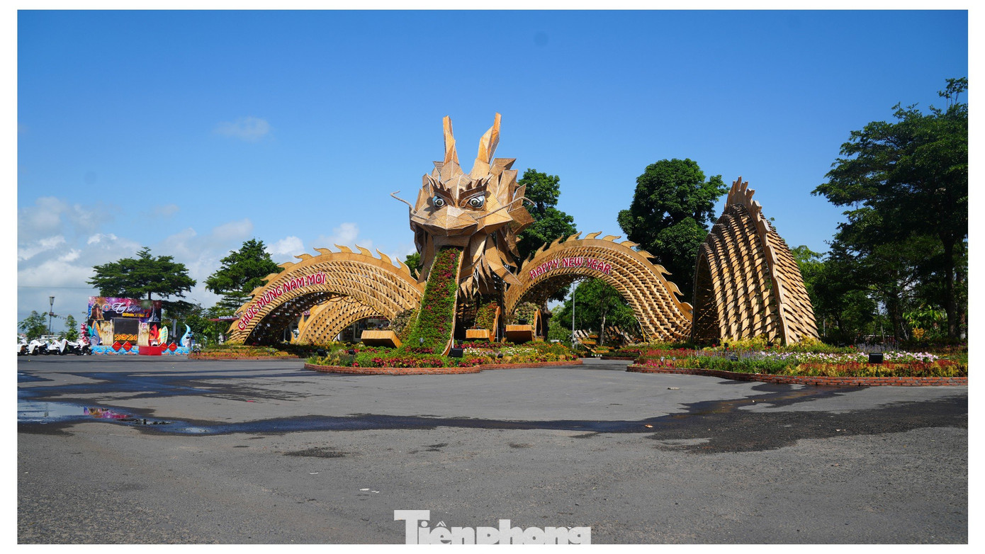 | Dọc đường chạy Tiền Phong Marathon 2024, các vận động viên và du khách cũng có thể "check in" với những linh vật rồng "khổng lồ" còn được giữ lại sau dịp Tết Nguyên đán Giáp Thìn 2024. Ảnh: Trọng Quân. |