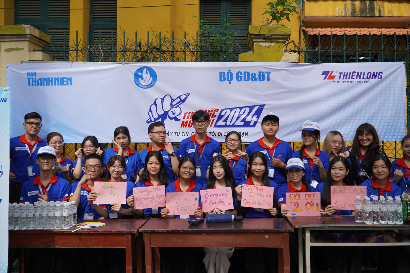 | Những bạn trẻ tình nguyện mang năng lượng tích cực, hào hứng cổ vũ các sĩ tử, với mong muốn giúp đỡ hết mình, chúc phúc các thí sinh có một kỳ thi suôn sẻ, tốt đẹp nhất. |